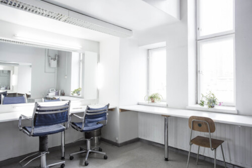 Kitchen, makeup room & toilet. Area can split with curtains for multiple working spaces.